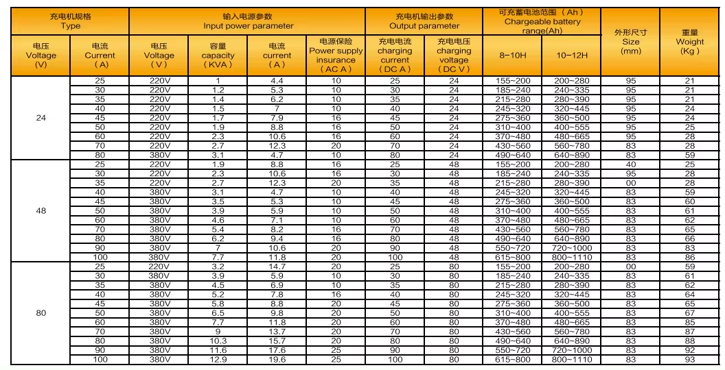 | E24V/80A | 220 | 3.1 | 14.1 | 80 | 24 | 490~640 | 640~890 | 280×430×300 | 37 |