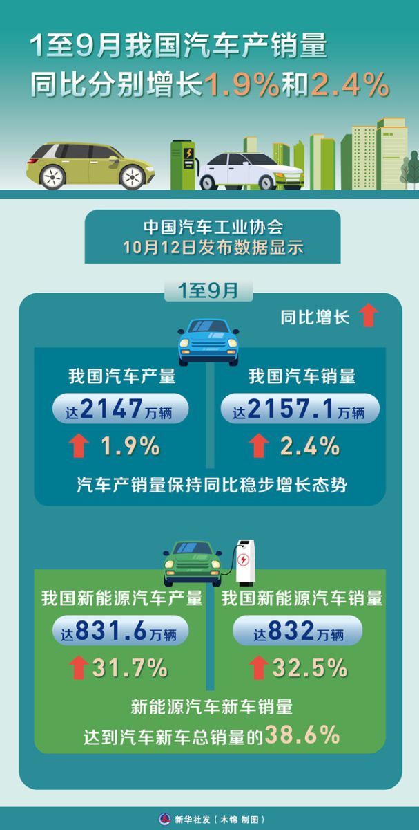 中國汽車工業協會12日發(fa)布(bu)數據顯示,1至9月,我國汽車產銷(xiao)量達2147萬(wan)輛和2157.1萬(wan)輛,同比分別增(zeng)長(chang)1.9%和2.4%,汽車產銷(xiao)量保(bao)持(chi)同比穩步增(zeng)長(chang)態勢。